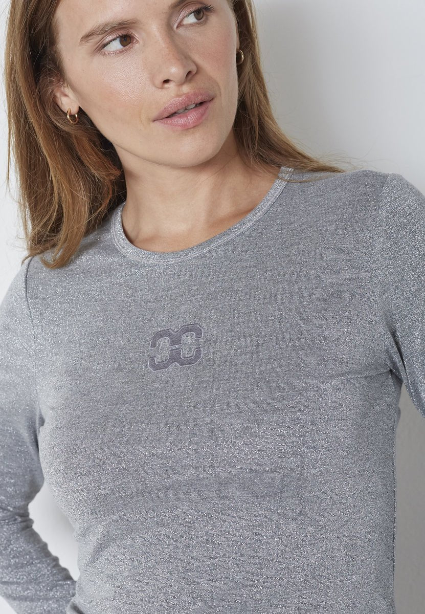 MannyCC Lurex Emb L/S Tee - Silver